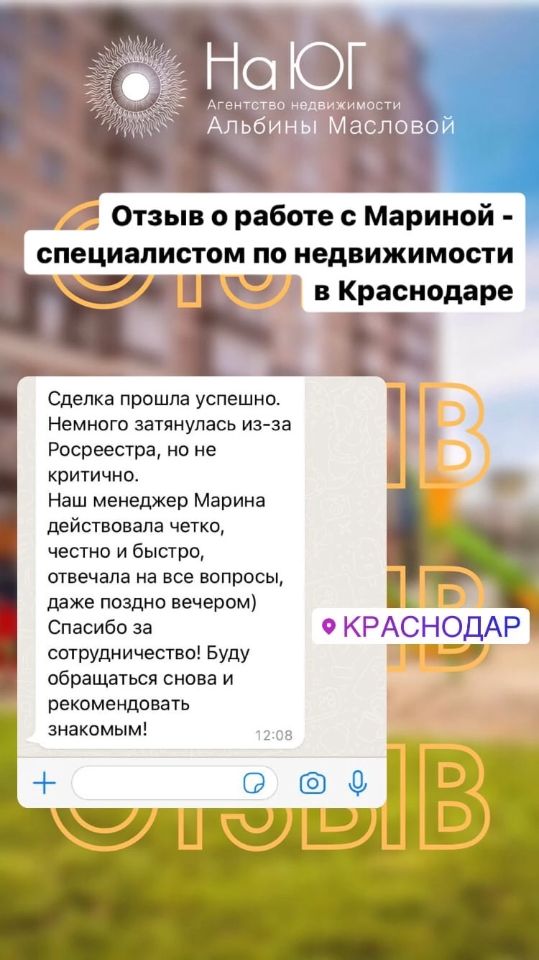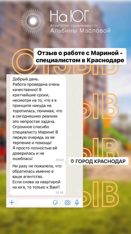 Специалист по недвижимости Агентства «На ЮГ» в городе Краснодар